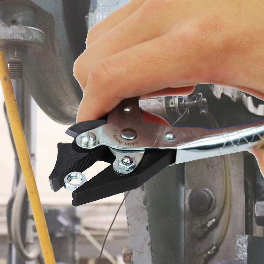 - Serrated jaws bite securely on small nuts, washers and clips.