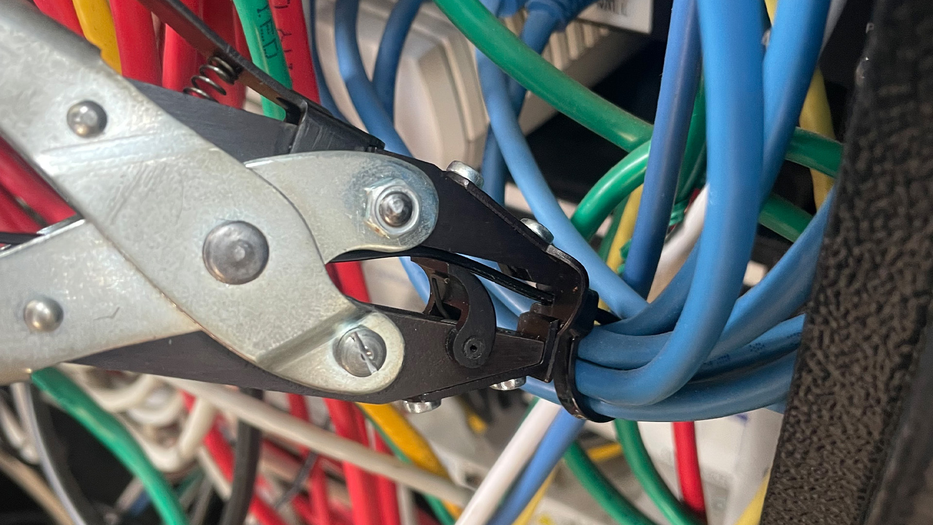 - You can tighten connections with a spanner, or alternatively to save time, use a pair of Side Cutter Parallel Pliers (as they’ll also be useful in creating cable exits, meaning you only need one tool).
